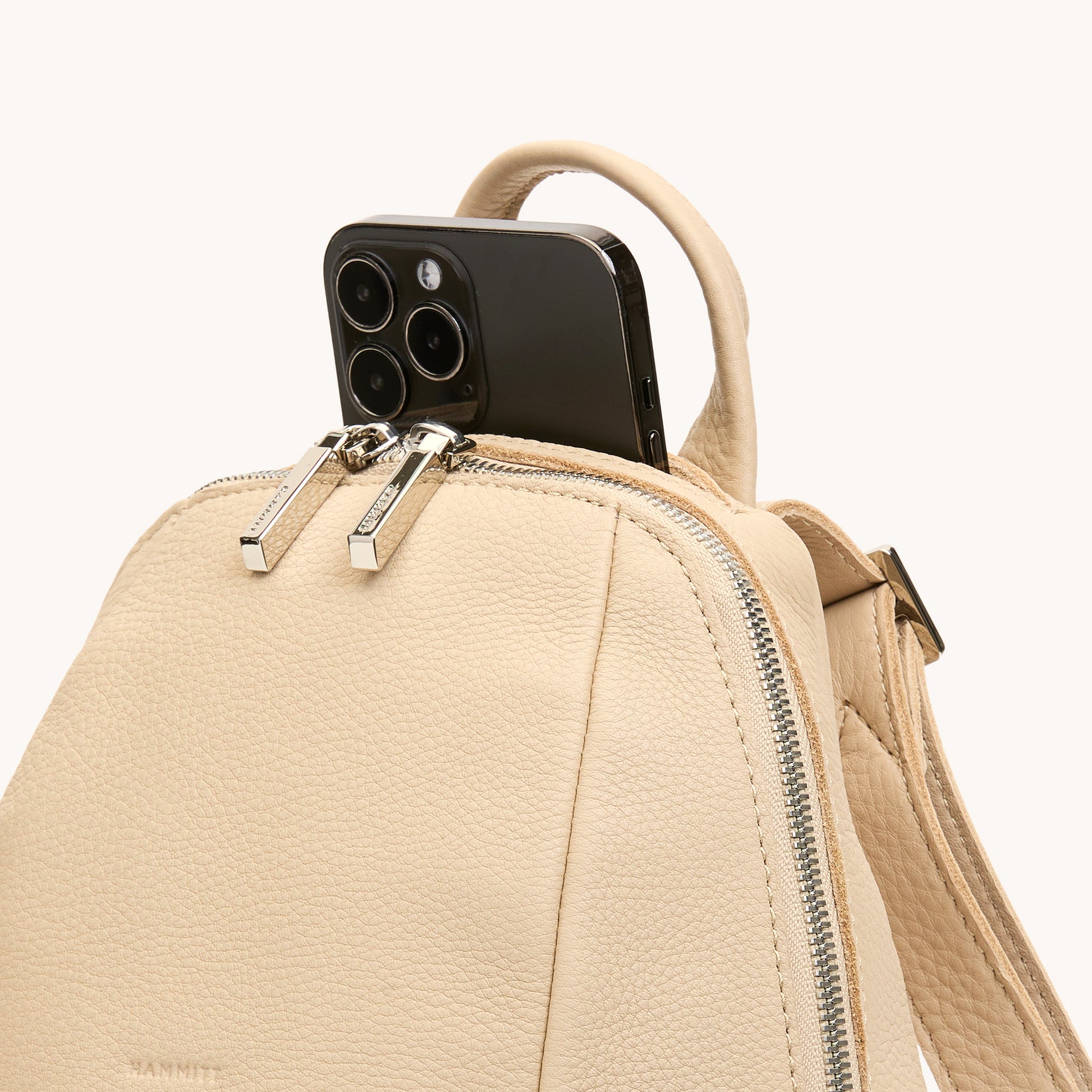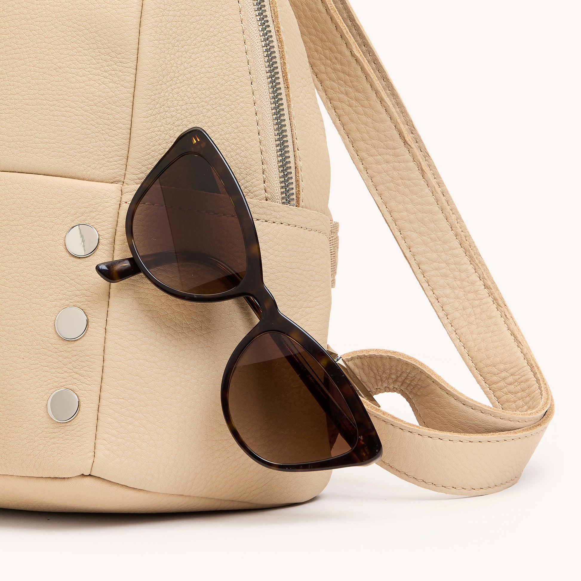 - Crafted with a warm cream pebble leather with beige and taupe undertones