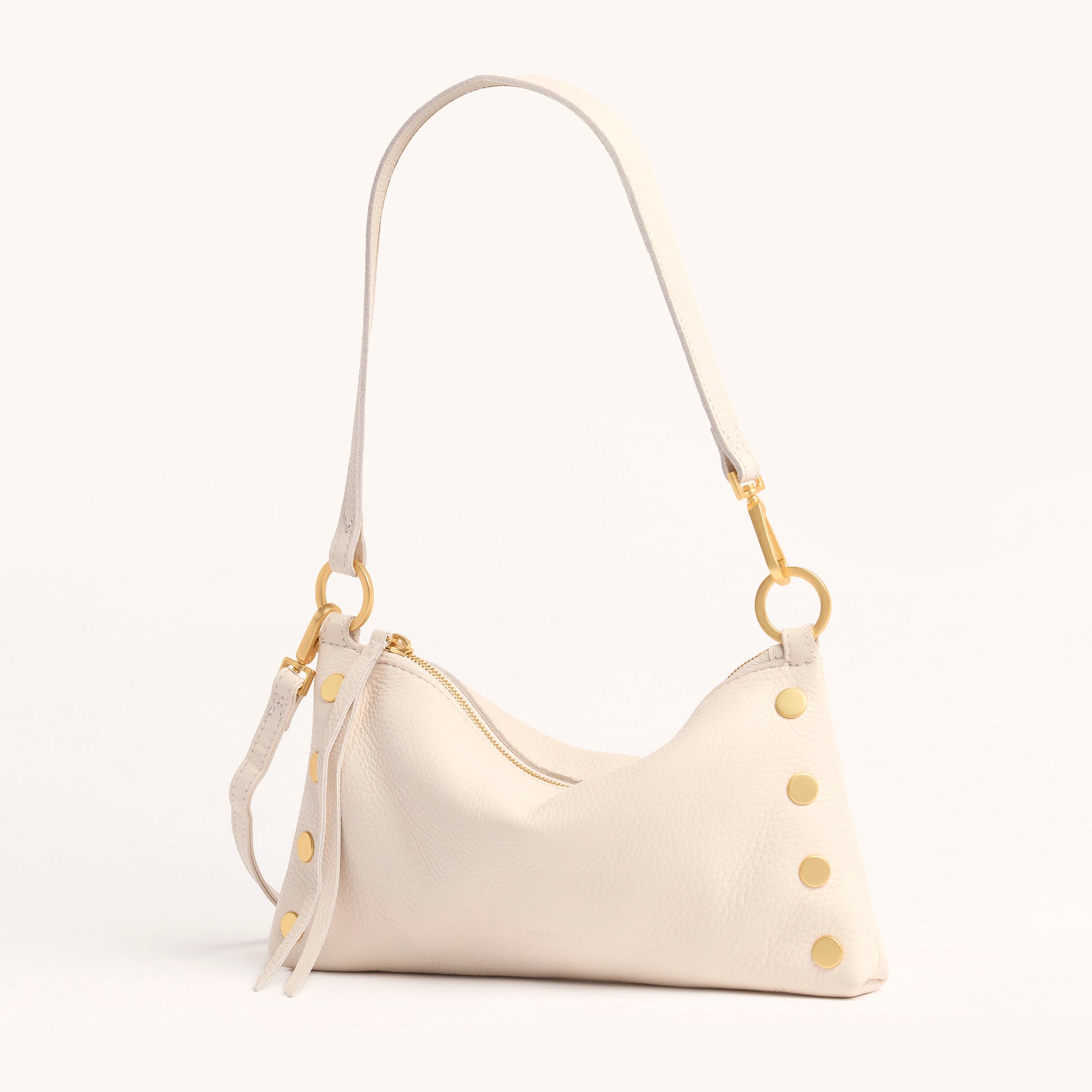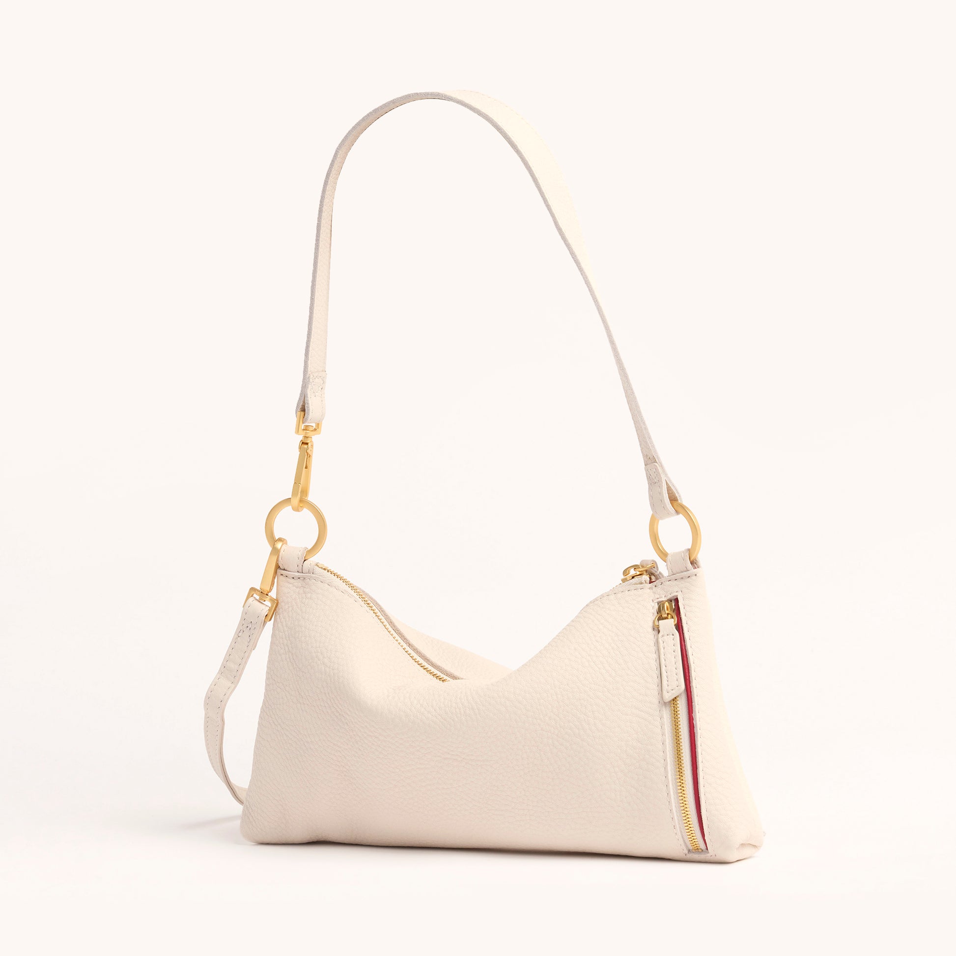 Trendsetters rejoice! This fresh, of-the-moment bag is entering the chat as a must-have companion for nights on the town. Featuring a slouchy but current shape, this versatile little number transitions from a wristlet to a shoulder bag in seconds flat. Plus, it's not just for the young and the restless: The Kyle also includes a removable and adjustable crossbody strap, so you can go hands-free - and carry a couple of cocktails. Our Calla Lily White collection is back by popular demand, featuring the same luminous warm white pebbled leather you love—now refreshed with brushed gold hardware for a touch of edgy elegance.