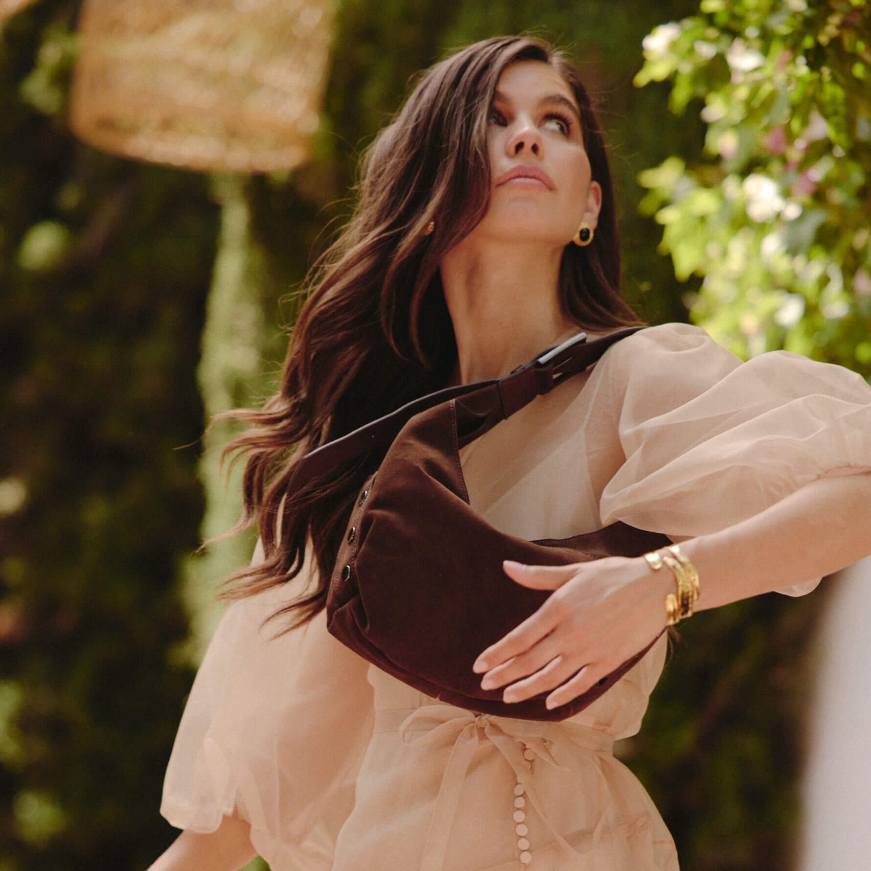 The suede is deliciously soft - and we're here to help you keep it that way! We handpick suede that is generally water resistant. We do recommend keeping this bag away from dirt and oils - storing in its dust bag is a must! Take special caution after applying lotion, sunscreen or other skincare. We recommend washing your hands before carrying your bag!
