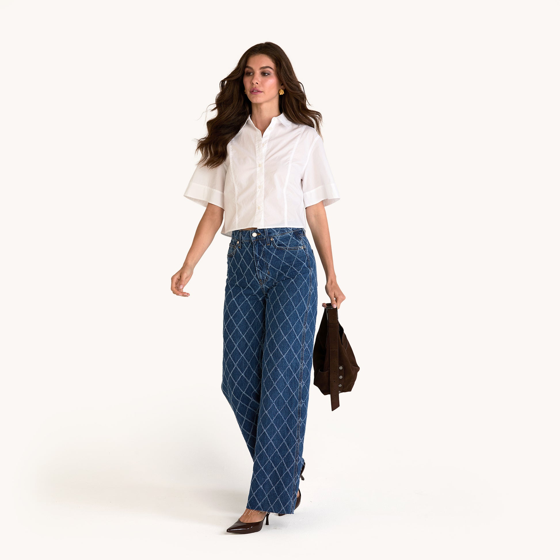 - Interior: credit card slot, interior drop pockets created from crisscross construction