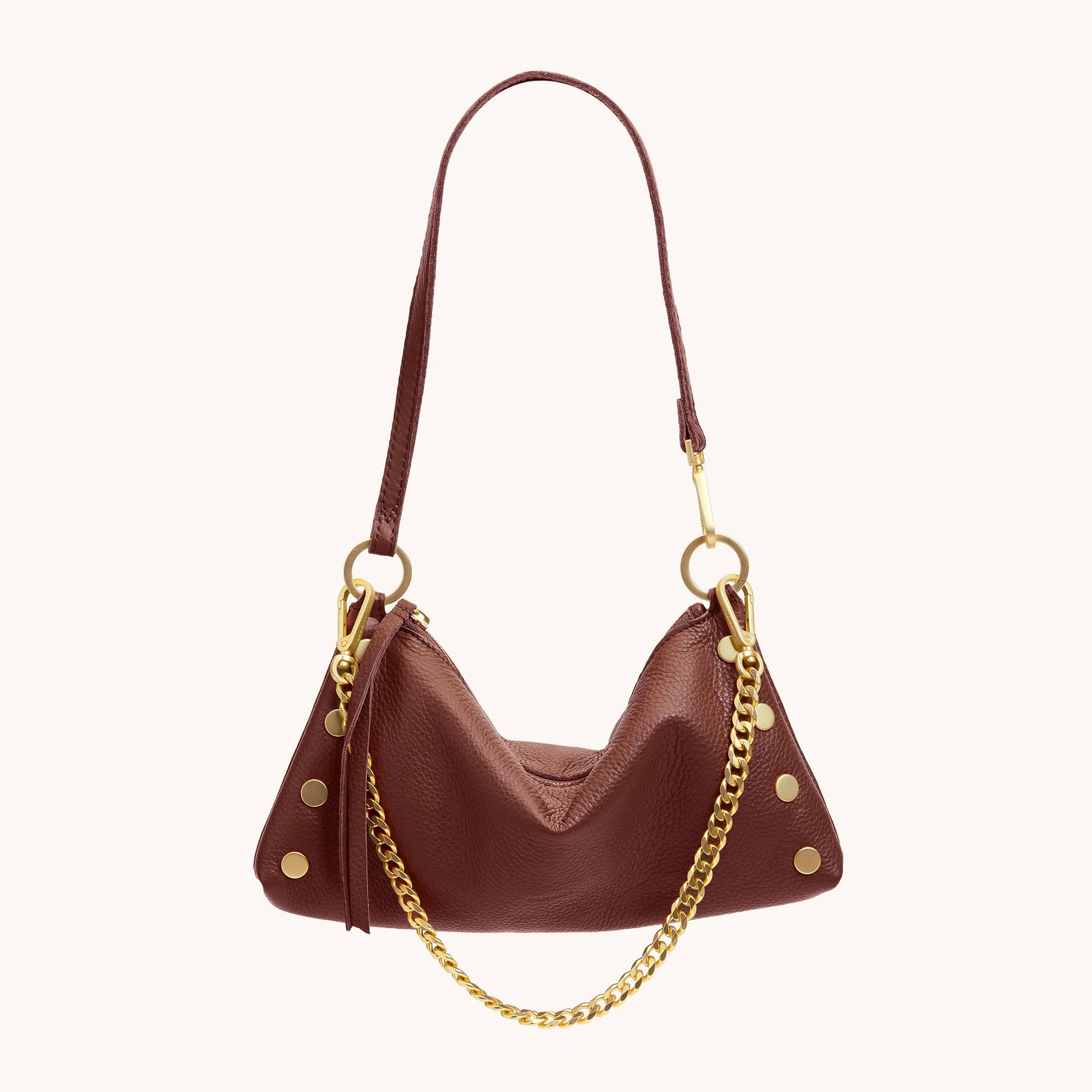 ‘Tis the season for a glittering final touch. Add our limited edition chain strap, available here with our brushed gold jewelry grade hardware, to any bag with a classic removable strap. Chain strap can also be added as a front bag decoration from handle to handle on select bags noted in the details section below!