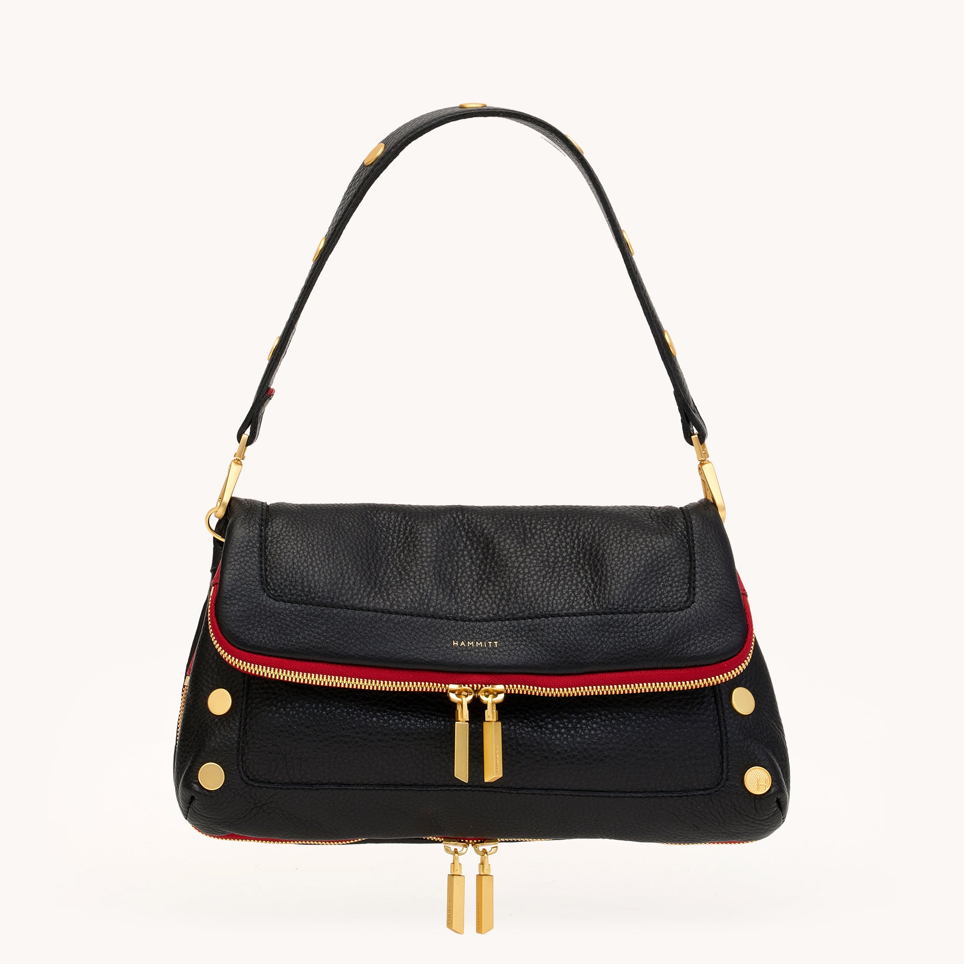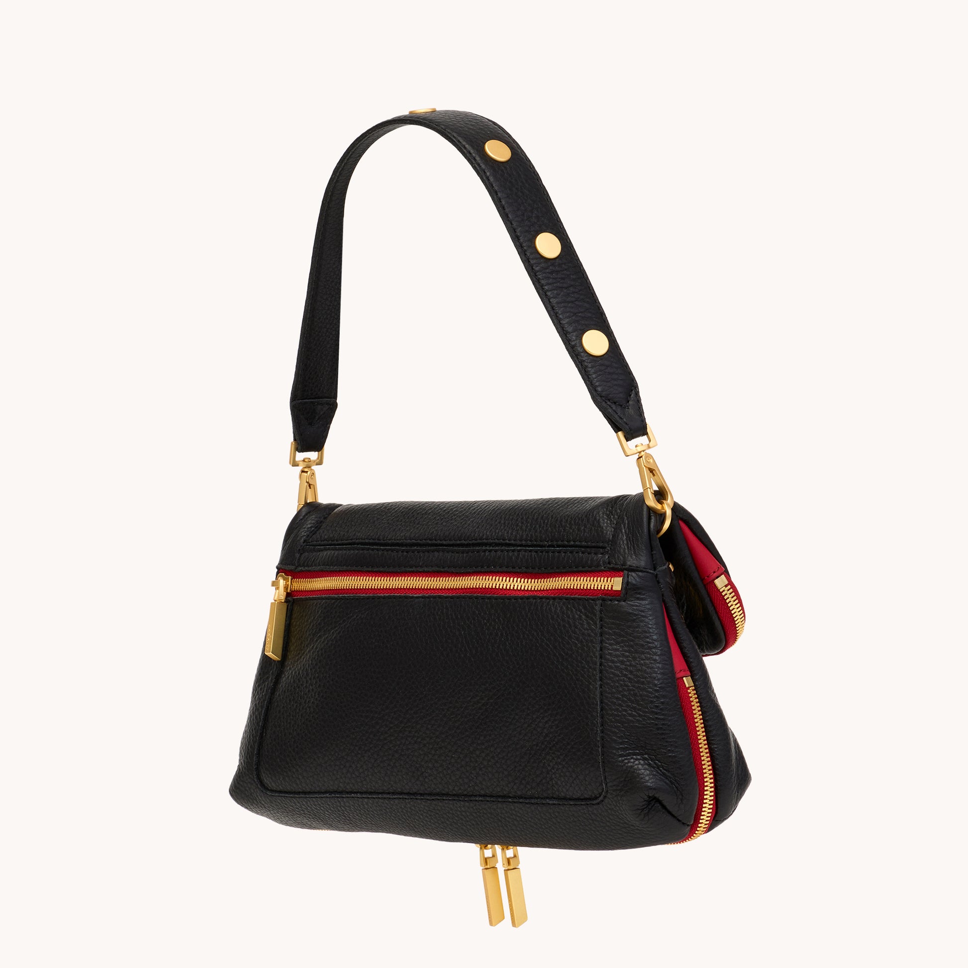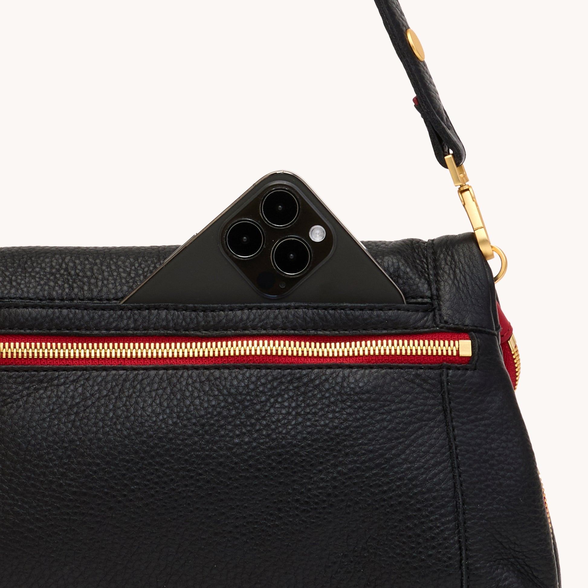 - Crafted with a classic black pebble leather and our signature red smooth Napa leather