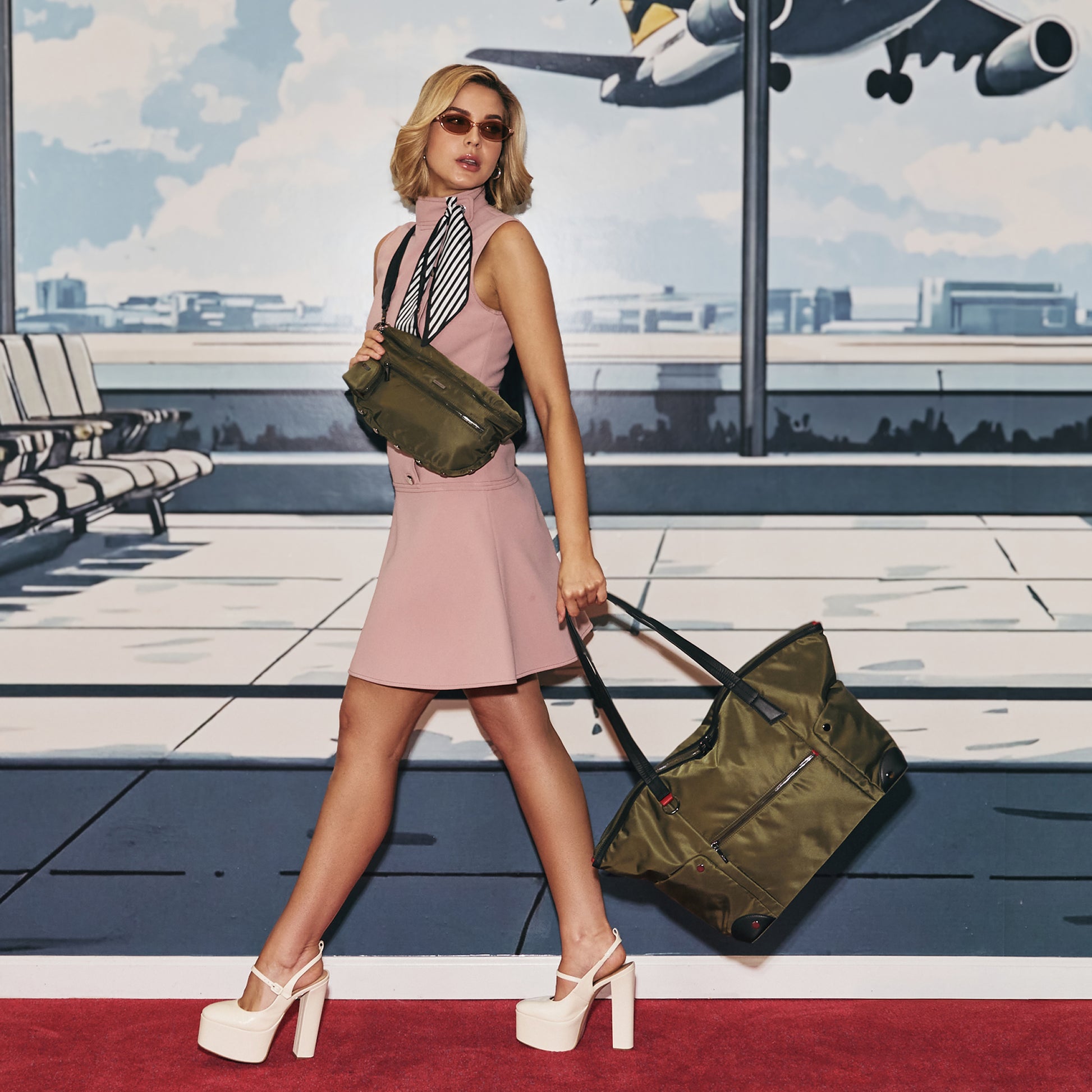 - Crafted with a luxurious olive-colored Italian nylon with classic black semi-veg tanned leather accents