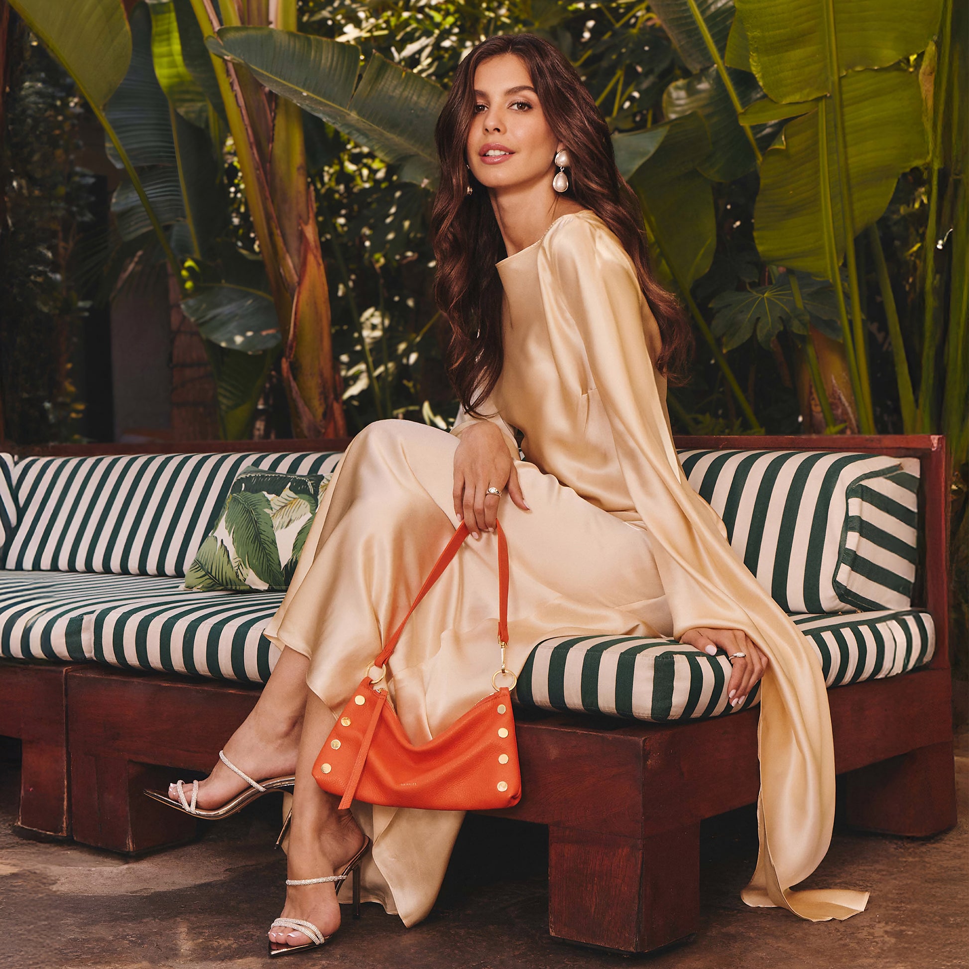 This fresh, of-the-moment bag is a must-have companion for nights on the town. Featuring a slouchy but current shape, in our classic pewter leather, this versatile little number transitions from a wristlet to a shoulder bag in seconds flat. The Kyle also includes a removable and adjustable crossbody strap, so you can go hands-free and allows the Kyle to be worn 3 different ways depending on your look!