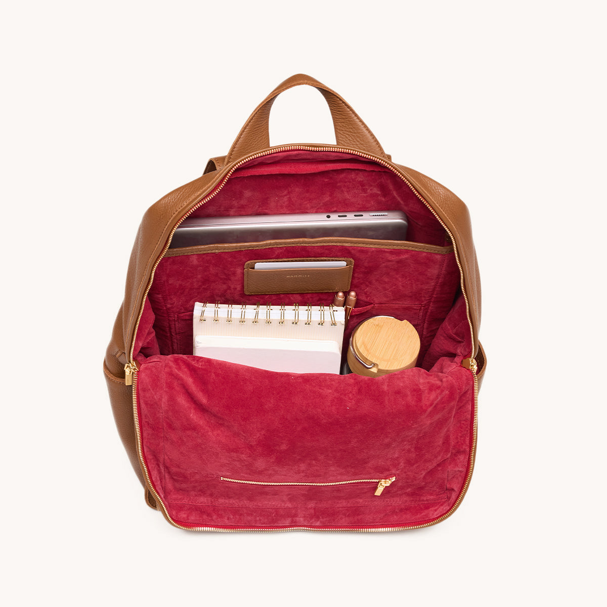 This XL edition of our beloved Montana Backpack makes the ultimate essential for parents, students and adventurers. Features adjustable straps for the perfect fit. A cousin of our best-selling mahogany suede collection, this leather features a soft pebbled texture with a hint of shine. Embrace the warm allure of this medium brown hue, enriched with a delicate yellow undertone that adds depth and sophistication to any ensemble.