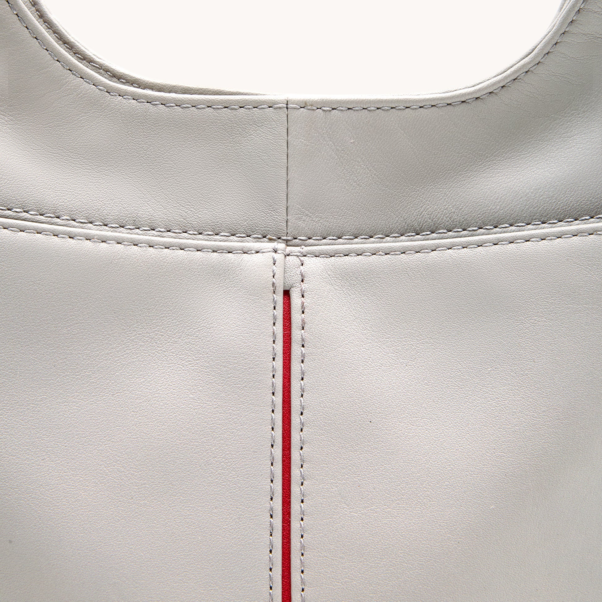- Exterior: Subtle back pocket, decorative O ring, rivets and red reveal line