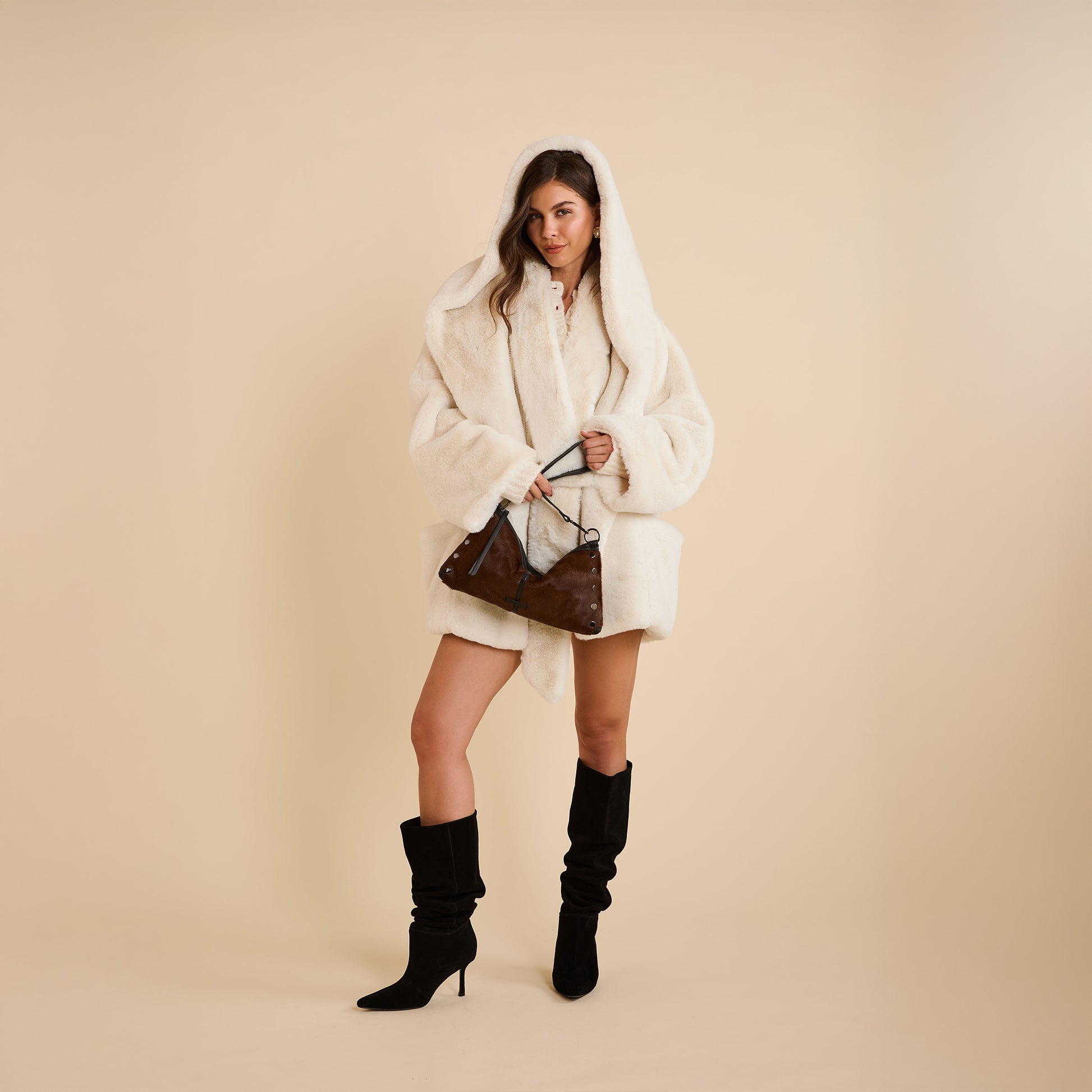 - Crafted with Italian hair on calf hair in deep, rich, chocolate with black smooth, semi-veg tanned and pebble leather accents