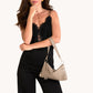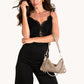 This fresh, of-the-moment bag is a must-have companion for nights on the town. Featuring a slouchy but current shape, in our classic pewter leather, this versatile little number transitions from a wristlet to a shoulder bag in seconds flat. The Kyle also includes a removable and adjustable crossbody strap, so you can go hands-free and allows the Kyle to be worn 3 different ways depending on your look!