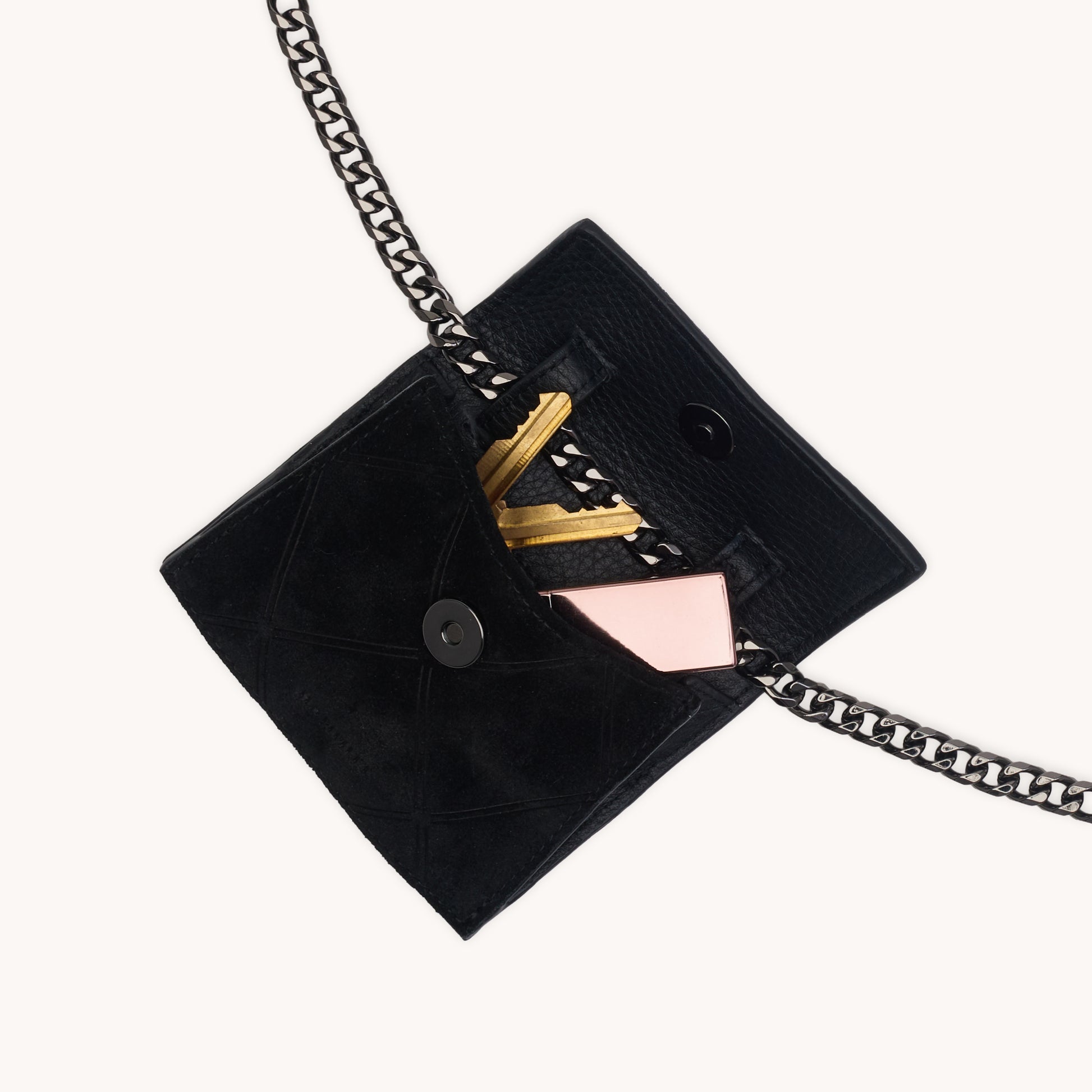 The Montana Pendant is back. With a new thin, detachable metal crossbody chain, it is the perfect accessory for any party. Wear the pendant over your neck or as a small cardholder for your pocket or bag.