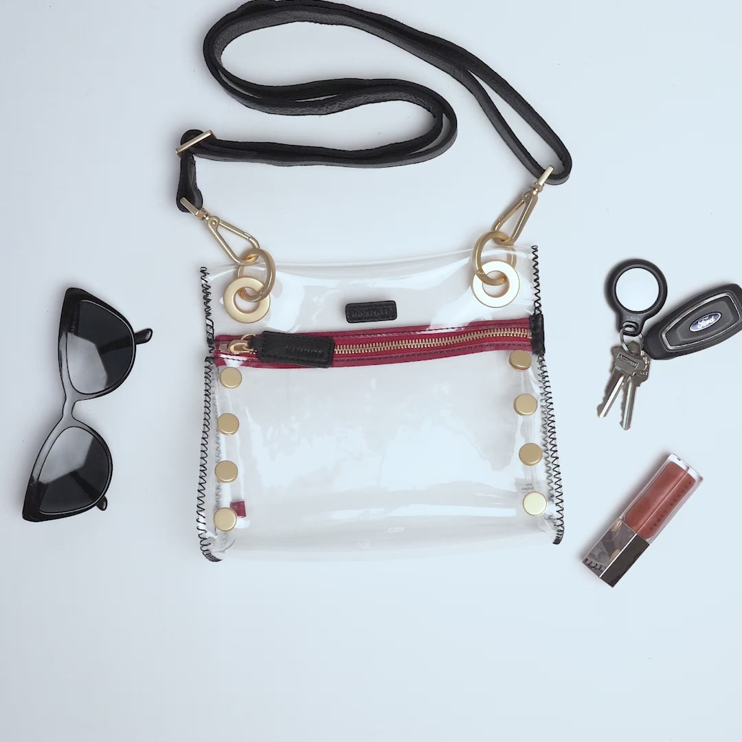 Breeze through security in style thanks to the internet's best stadium-approved clear bag. Crafted with flexible TPU and white leather trim, this guideline-ready size was designed to take on sporting arenas, concerts, festivals, airports and beyond. Plus, find your perfect fit with an adjustable crossbody strap. Trust us: Following the rules has never looked better.