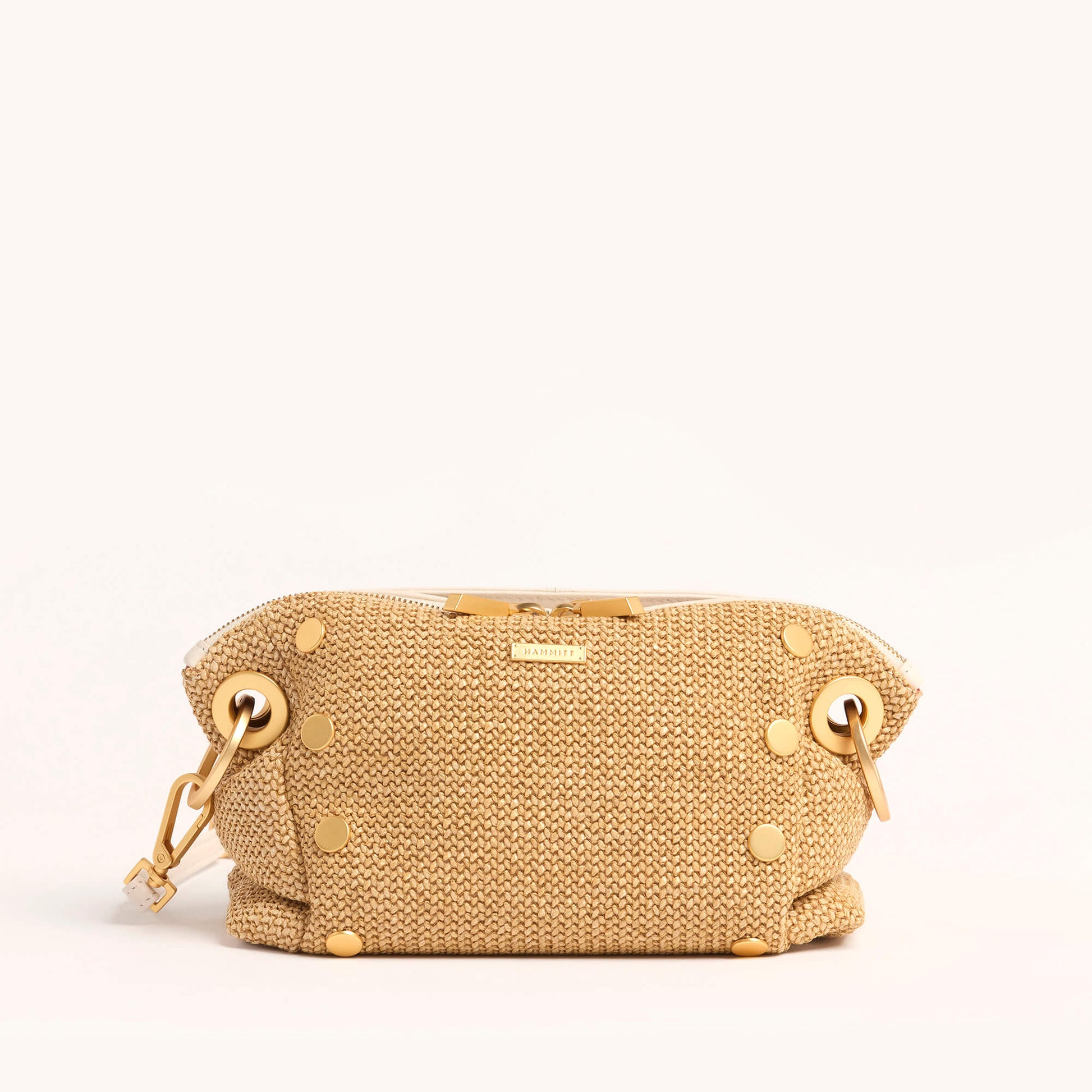Introducing the smallest edition to our Daniel family! The Daniel Crossbody Clutch Sml is the small clutch version of the best selling satchel. It’s the fan favorite Daniel style you love, but now in a more compact size! The curved top, and the ruched sides are intended to give a permanent “slouchy" look to the bag, even when it’s hanging as a crossbody. Spanish raffia and soft pebbled leather collide in a collection that instantly transports you to vacation mode, capturing the essence of sun-soaked days and cherished beachside moments.