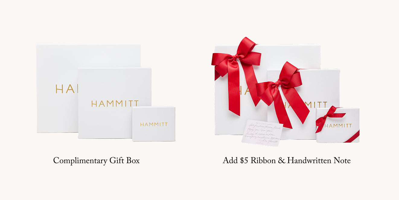 Most items come in our signature white box. Every item is protected by a dust bag and tissue paper. This holiday season, you can select the following gift options on your cart.