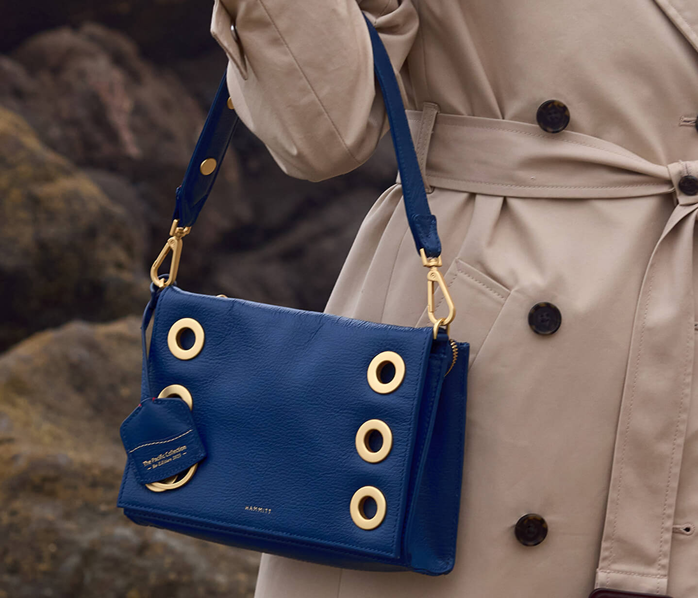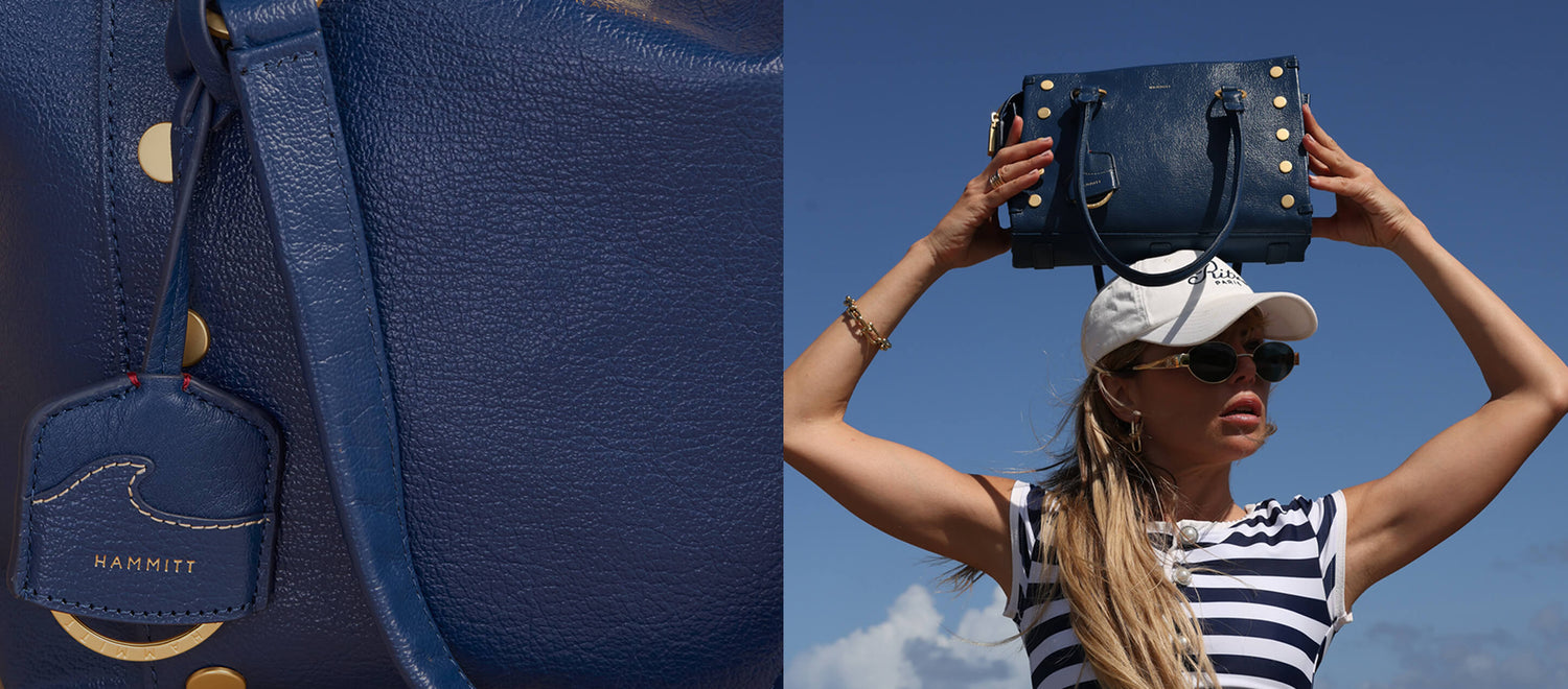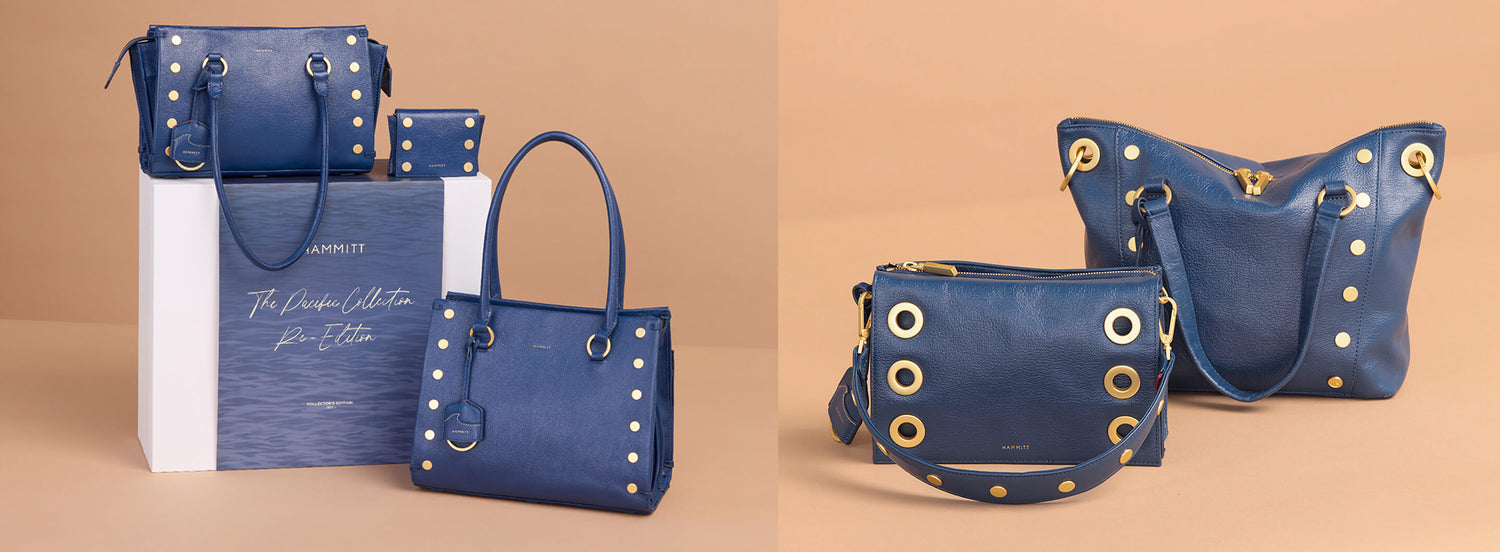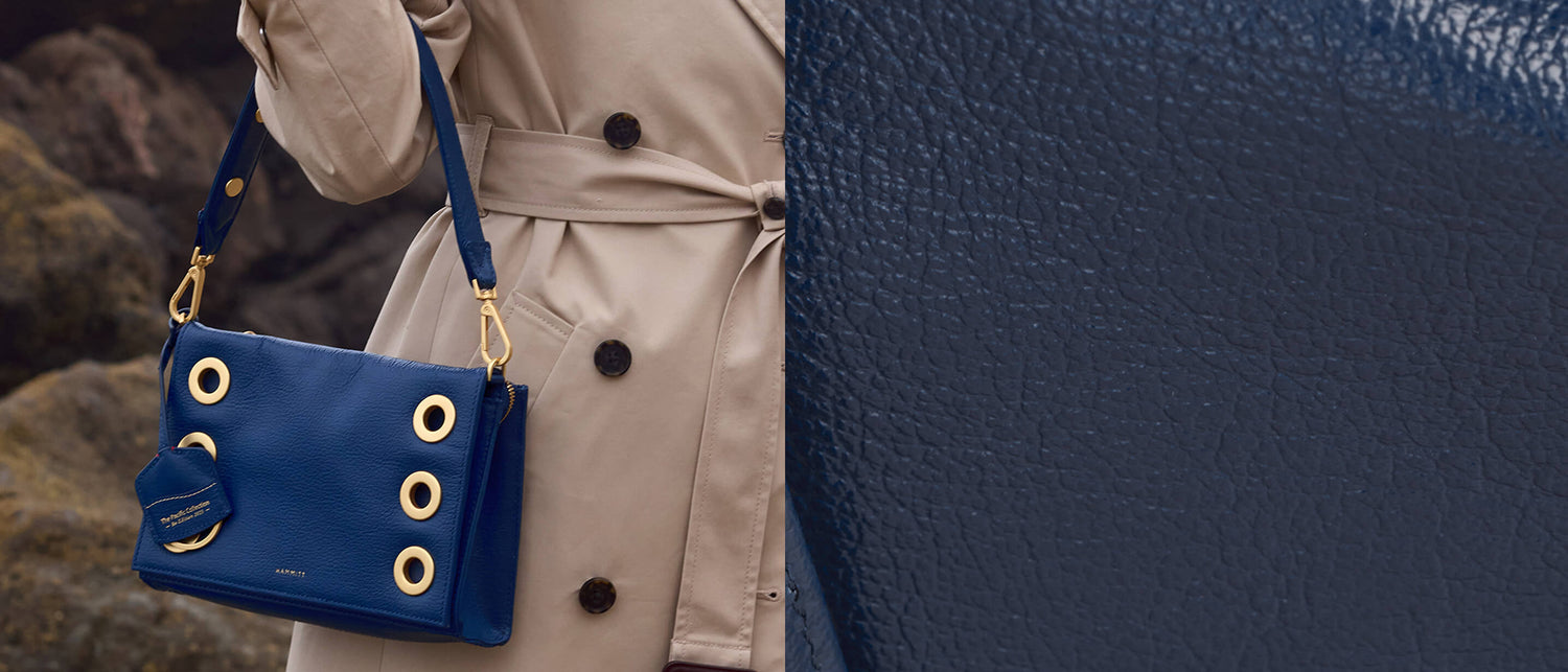Deep blue Italian leather and Limited edition tan suede lining shine alongside commemorative embossed details, so it's easy to treasure this homage to sand and sea. Each bag feature a collectible keychain, complete with a branded keyring and a cutout leather wave.