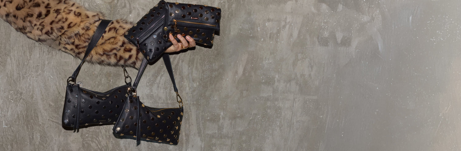 Inspired by glimmering lights of Hollywood, our Premiere Collection is the ultimate showcase of iconic shimmering rivets. This collector’s edition drop shines in the spotlight, reflecting light fromevery angle thanks to a mirrored take on Hammitt’s iconic hardware.Â