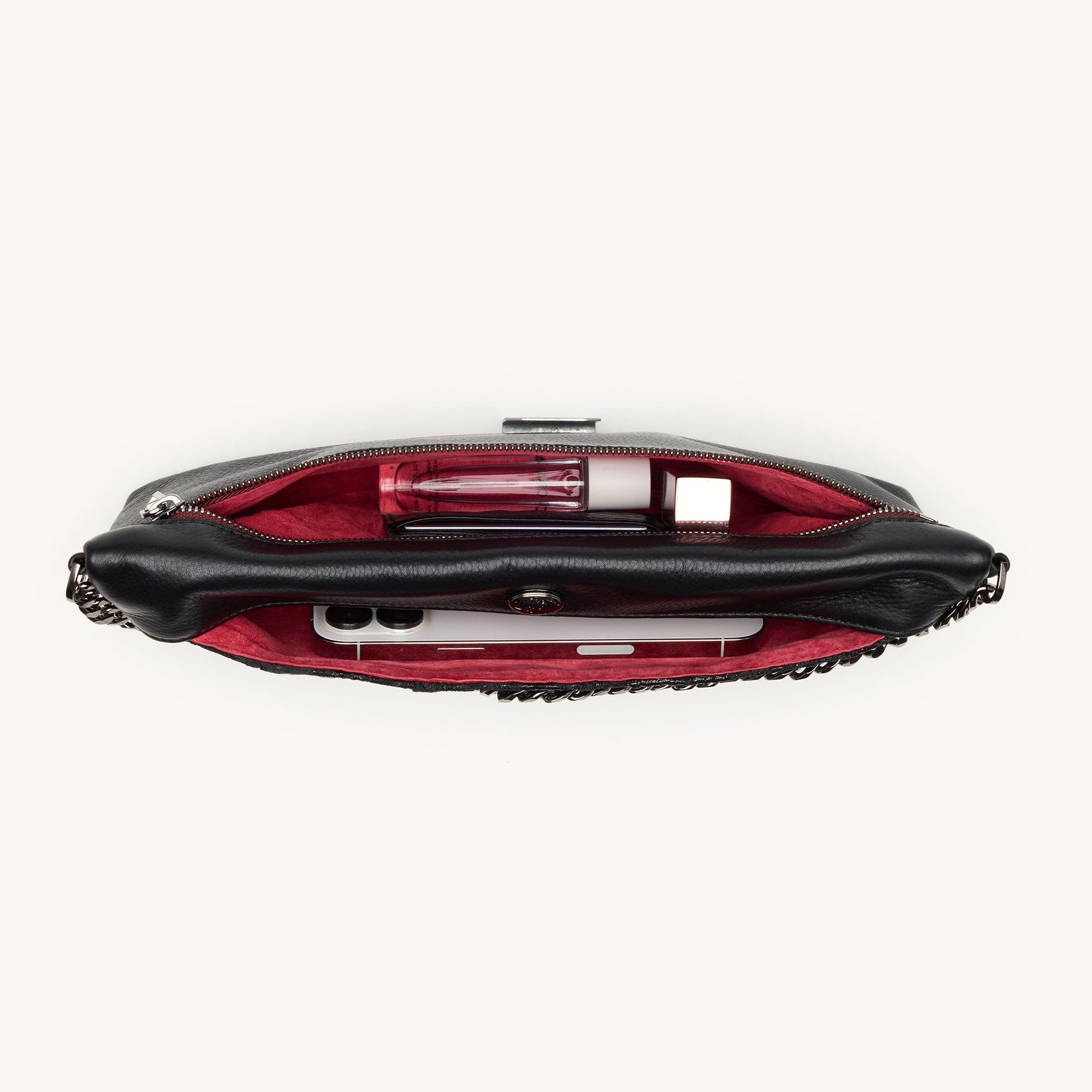 Meet the Invitation Clutch – your perfect plus-one for any event. This is the first Hammitt bag designed exclusively as a clutch, making it a must-have accessory for high-end occasions. This clutch is ideal for cocktail hours and evening events, as it features our signature metal chain strap, allowing you to wear it elegantly over your hand or draped across your forearm. This silhouette also marks the debut of our new Hammitt Droplet hardware piece, a modern update to our iconic brand logo through the lens of a single water droplet.