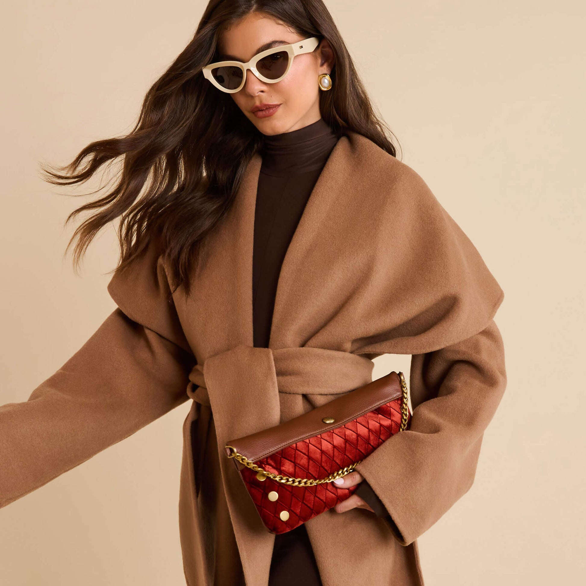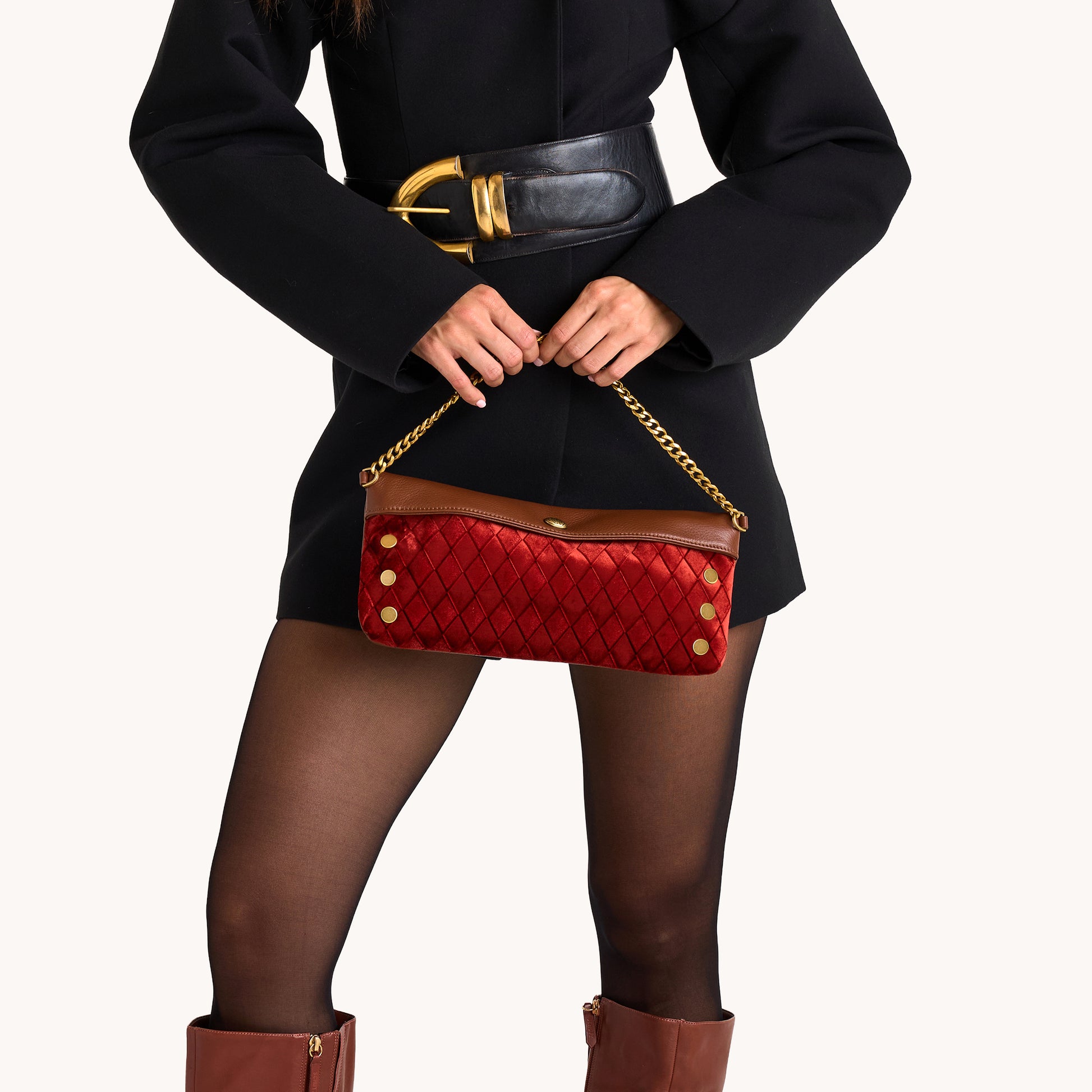 Meet the Invitation Clutch – your perfect plus-one for any event. This is the first Hammitt bag designed exclusively as a clutch, making it a must-have accessory for high-end occasions. This clutch is ideal for cocktail hours and evening events, as it features our signature metal chain strap, allowing you to wear it elegantly over your hand or draped across your forearm. This silhouette also marks the debut of our new Hammitt Droplet hardware piece, a modern update to our iconic brand logo through the lens of a single water droplet.