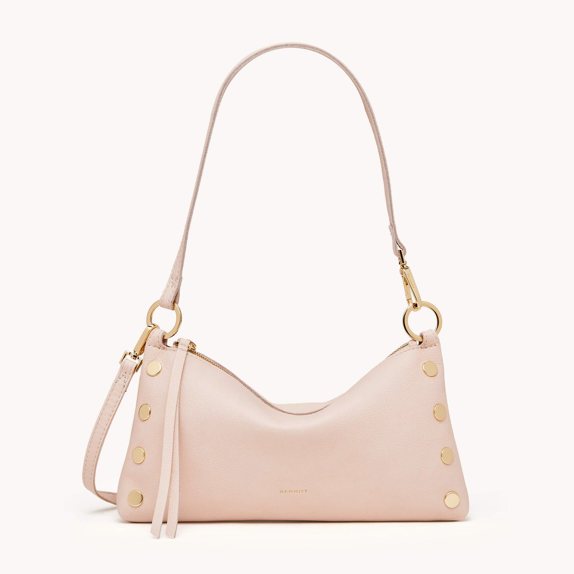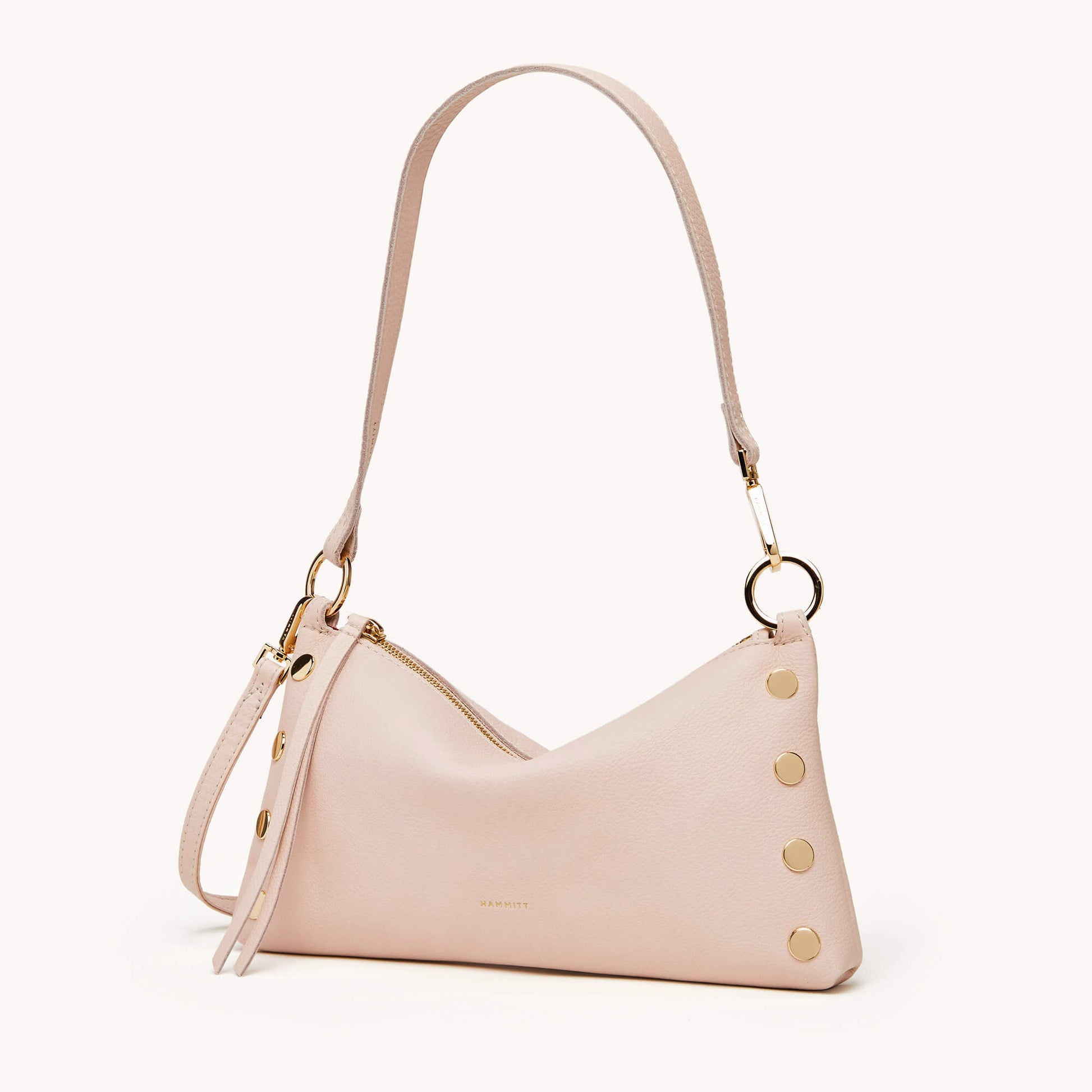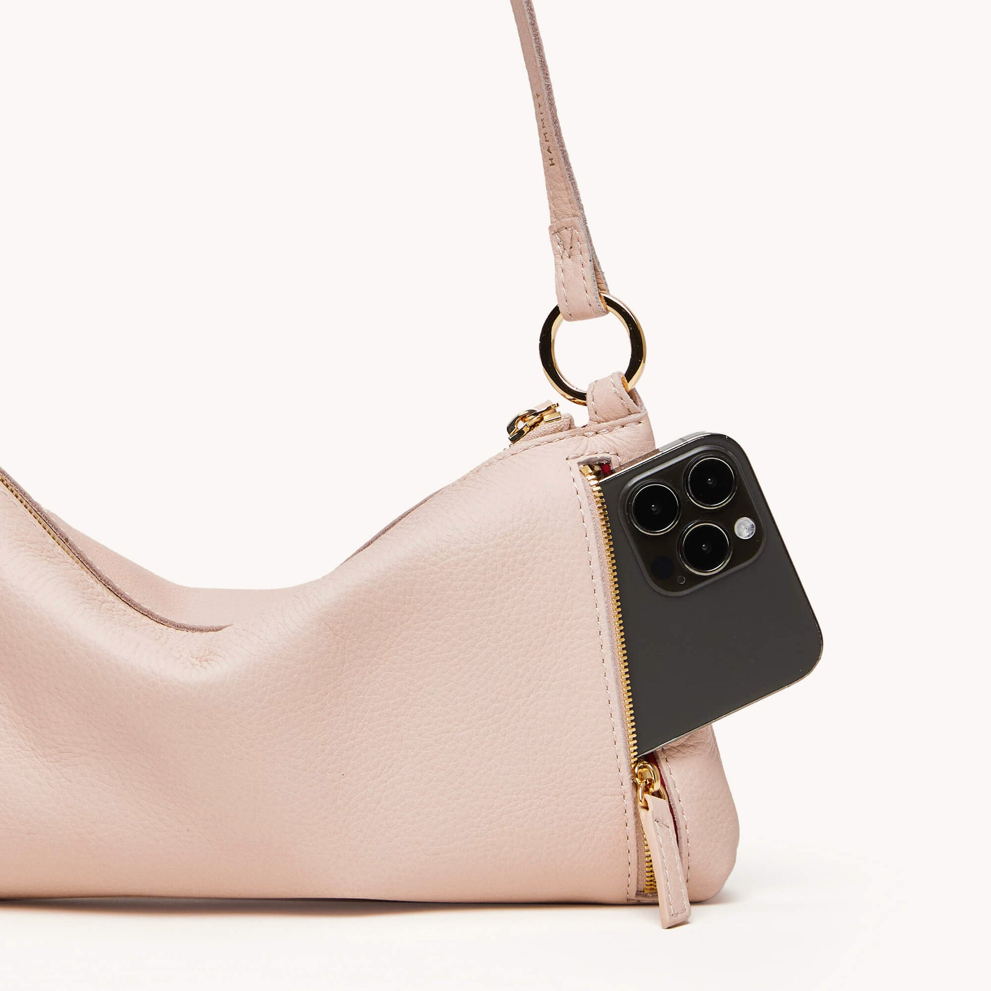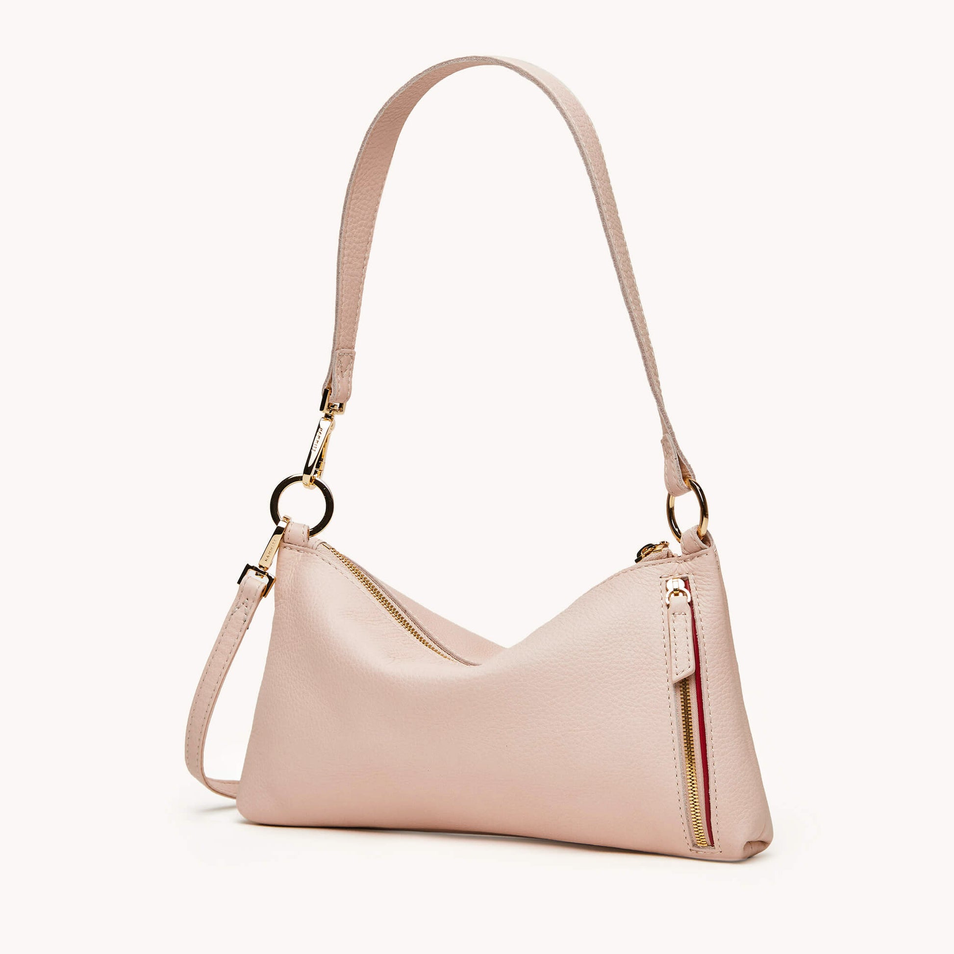 This fresh, of-the-moment bag is a must-have companion for nights on the town. Featuring a slouchy but current shape, this versatile little number transitions from a wristlet to a shoulder bag in seconds flat. Crafted with our classic soft pebbled leather, this edition of Superbloom Pink features shiny gold hardware. The Kyle also includes a removable and adjustable crossbody strap, so you can go hands-free and allows the Kyle to be worn 3 different ways depending on your look!